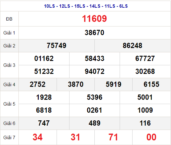 | Ngày | Giải ĐB | Ngày | Giải ĐB | Ngày | Giải ĐB |