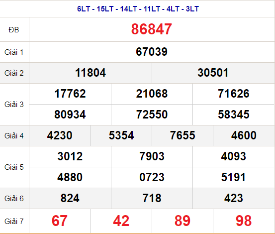 | Ngày | Giải ĐB | Ngày | Giải ĐB | Ngày | Giải ĐB |